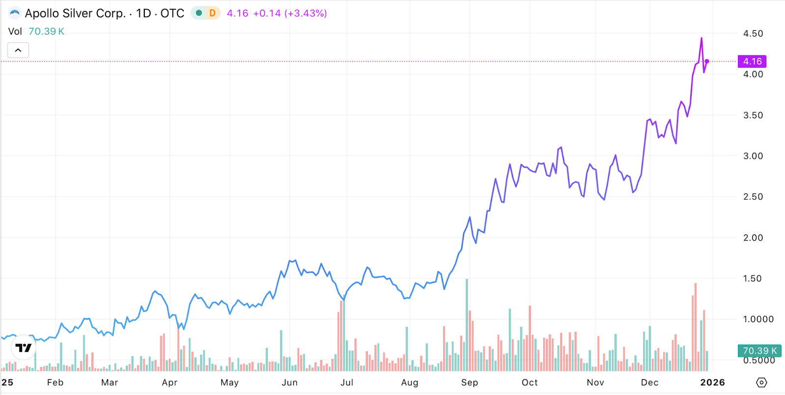Apollo Silver is a junior we’ve been recommending for years. And if you bought it when we recommended it, you’re sitting on a small fortune.