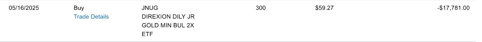 I personally purchased JNUG last year at a price that now looks like an absolute steal. In fact, here’s a screenshot of my purchase: