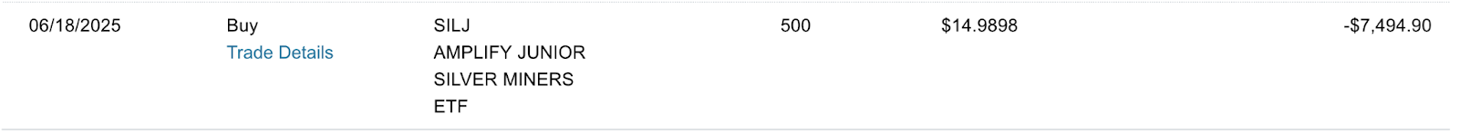 Here’s my personal trade into SILJ: