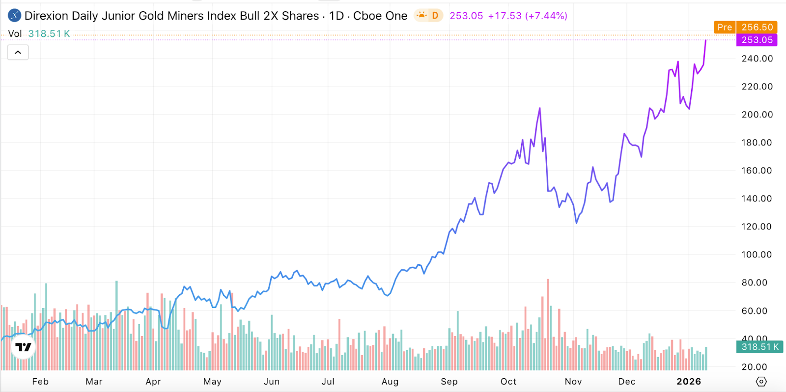 JNUG — The Triple-Leverage Gold Play