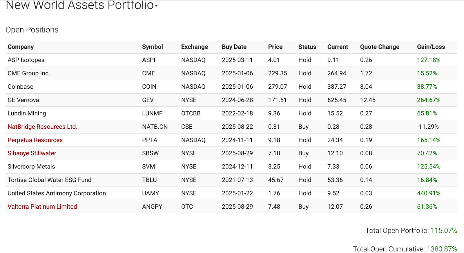 I don’t mind showing you the NWA portfolio for free, because we’ve already made generational wealth off of these names… and made it within two years!