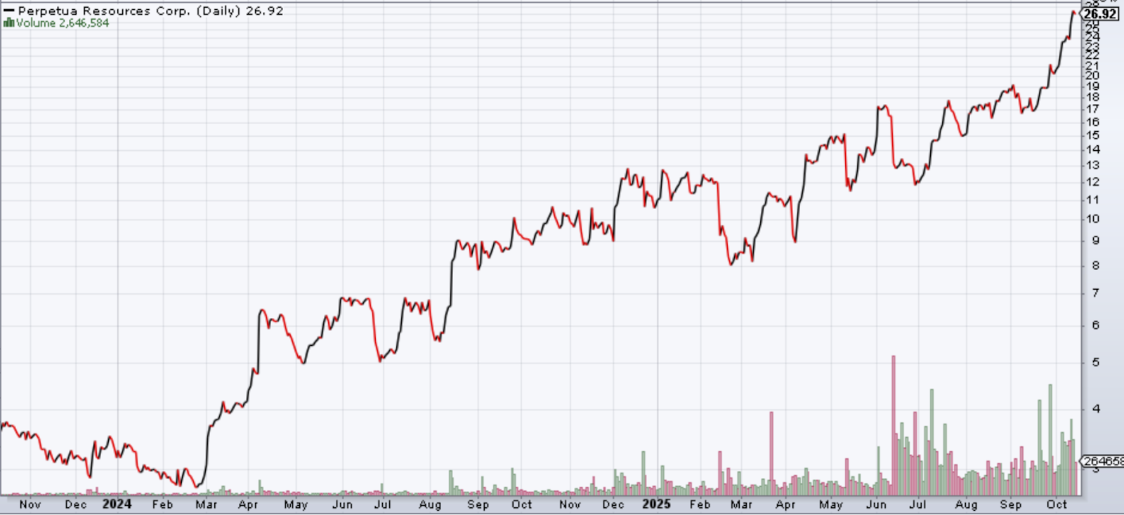 Investors smelled the leverage. PPTA is not a pure antimony play; it’s also a gold play. When you combine upside in precious metals with critical mineral optionality, the upside is magnified. In recent sessions, PPTA shares climbed double digits, setting fresh records.